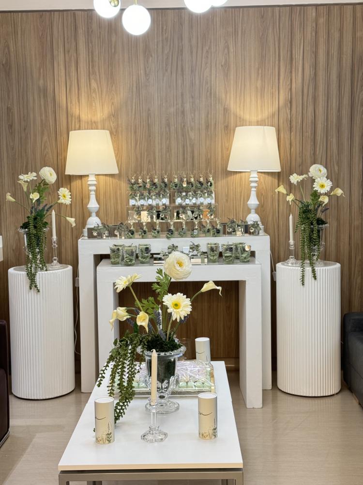إن البساطة هي سر الجمال المختلف ولذلك اخترنا لك طاولات باللون الأبيض وابجورتين كلاسيكية مضيئة لمشاركة ضيوفك فرحة قدوم مولودك ✨