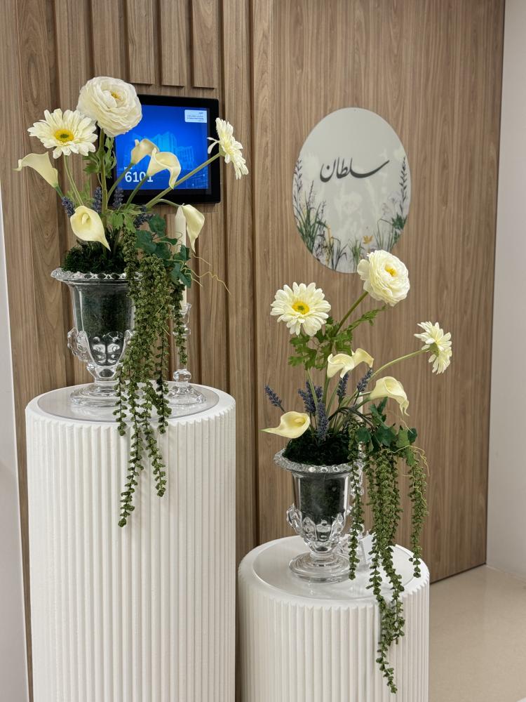 صممنا لك استقبال مزين بفازات الورد الكريستالية الأنيقة مع كتابة أسم طفلك بخط مميز وكبير على باب الغرفة✨